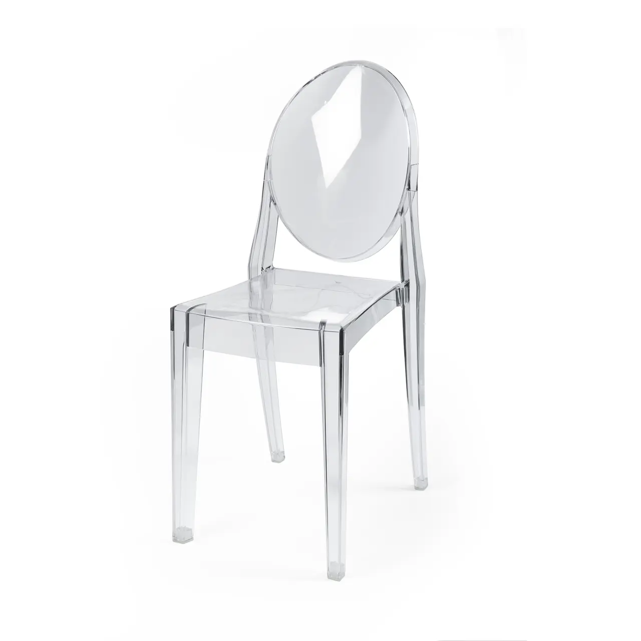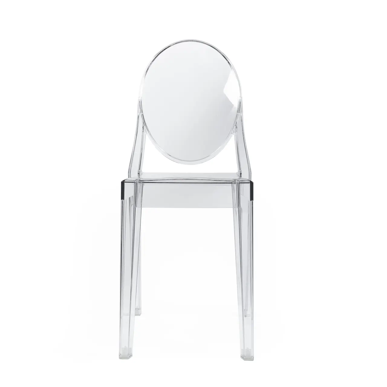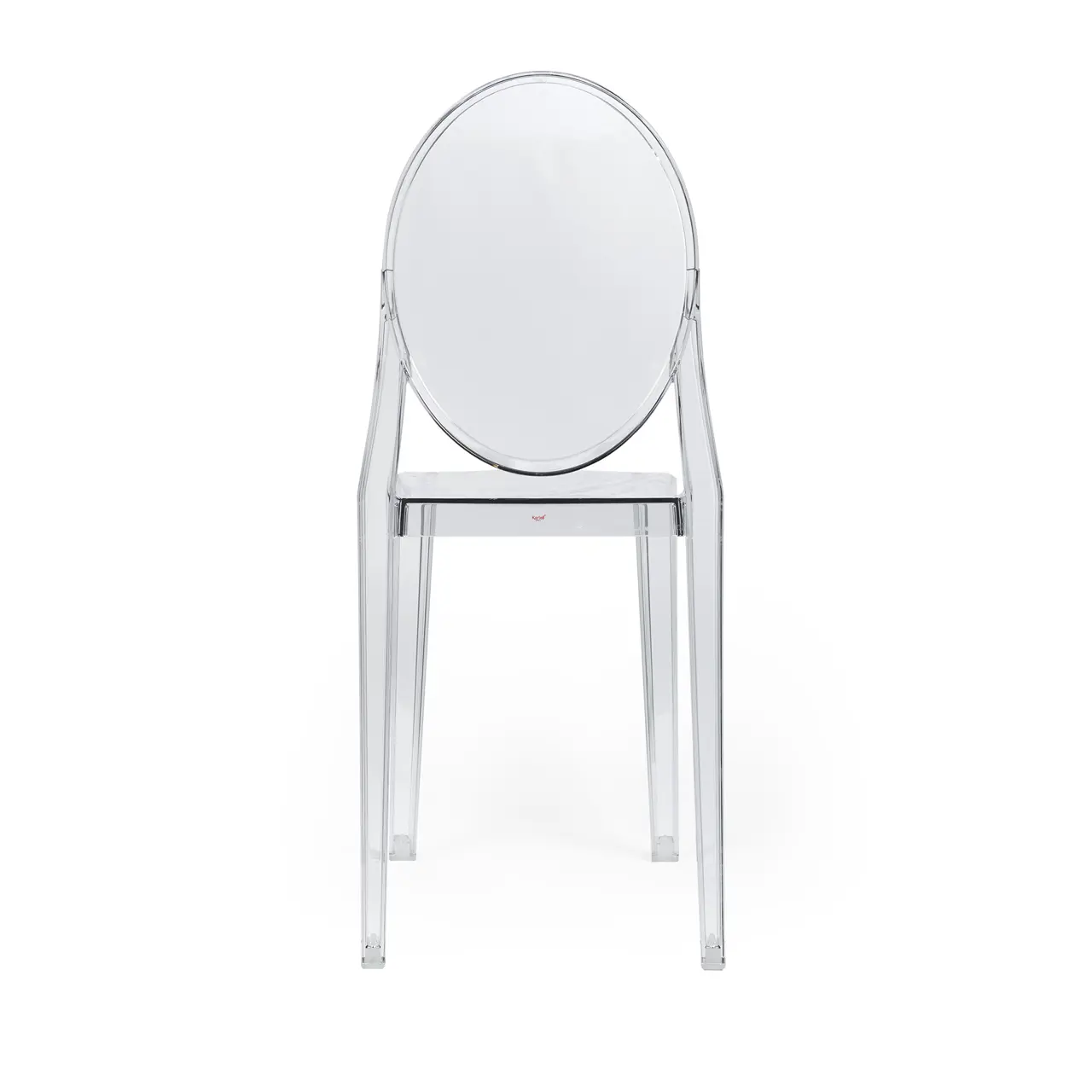 La sedia Victoria Ghost unisce eleganza e versatilità con uno schienale arrotondato ispirato agli antichi medaglioni e una seduta dalle linee geometriche. Realizzata in policarbonato trasparente con stampaggio a iniezione monoscocca, è resistente agli urti e agli agenti atmosferici. Adatta a diversi ambienti, offre comfort e stabilità.